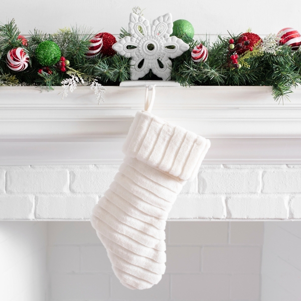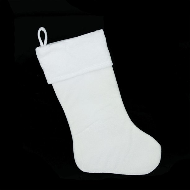 Senneny 6 pack christmas stockings 18 inch black white buffalo plaid christmas stockings. North light traditional solid white velvet christmas stocking 19 stocking is solid white velvet. Solid white christmas stocking white folded cuff at the top with velvet stocking comes ready to hang with a fabric loop this is not a toy.