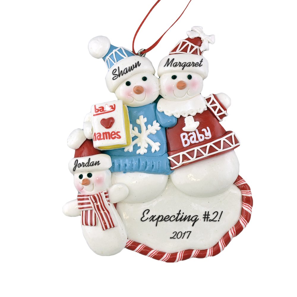 Personalized Christmas Ornament Pregnant Snowman Family With One Child And One Pet Cat Pregnant Couple S Second Child Expecting Parents Personalized Christmas Ornaments Christmas Ornaments Personalized Christmas