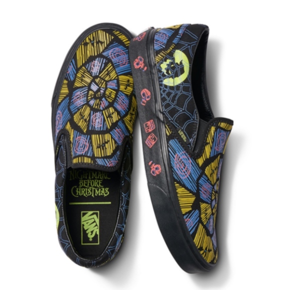 The nightmare before christmas. Spooky season is here and vans have got you covered with this range of halloween friendly nightmare before christmas inspired shoes. An homage to the creative spirit of the classic film this collection features an array of signature vans skate shoes with designs inspired by jack skellington s adventures in halloween town and christmas town.