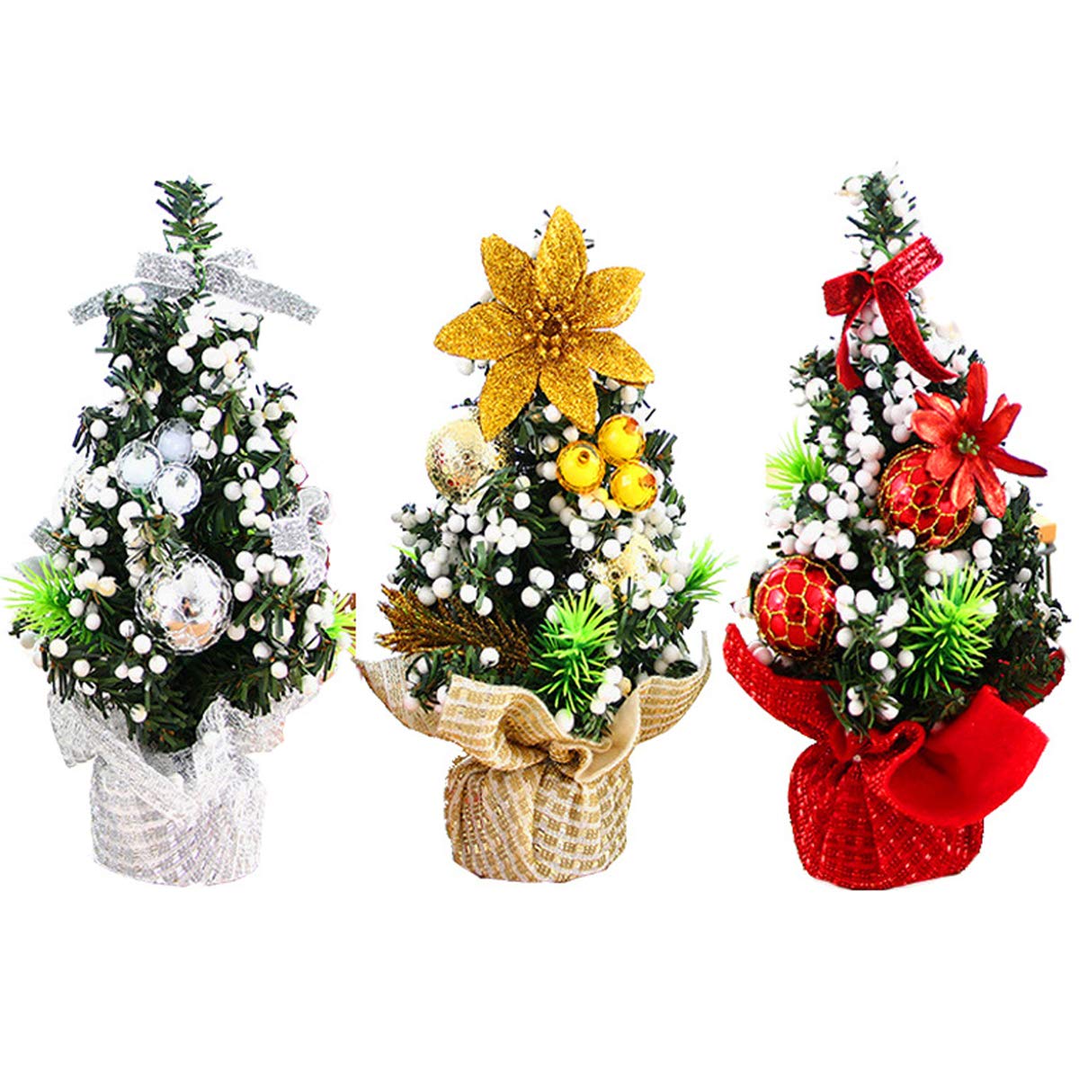 Sunreek 3 Pieces Mini Artificial Christmas Tree With Ornaments Perfect Christmas Decoration For Table And Desk Tops Small