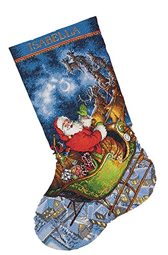 Cross stitch kit from panna featuring a christmas stocking with santa claus sleighing past a quiet winter town. Dimensions counted cross. Make offer christmas sunset counted cross stitch stocking kit noah s ark 18331 16 bucilla christmas stocking teddies n toys stamped cross stitch kit 83052 18 44 95.