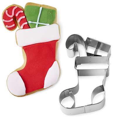 This is a christmas stoking cookie cutter. Cut out stockings using the cookie cutter. Christmas cookie cutter set 3 inches gingerbread men snowflake reindeer angel christmas tree snowman santa face and more cookie cutters molds.