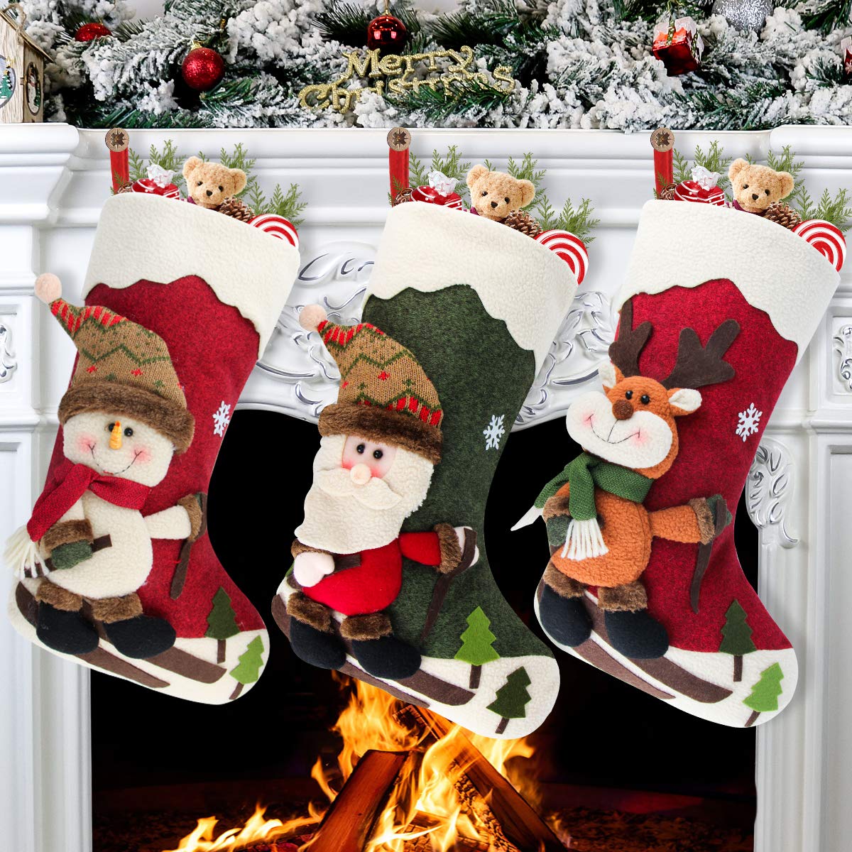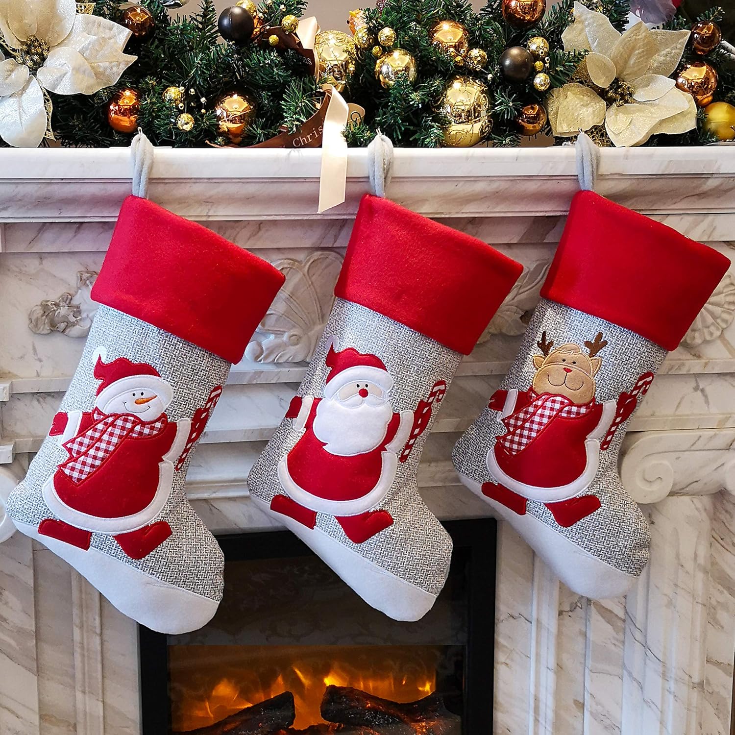 124 75 free shipping personalized christmas stocking embroidered. Get it as soon as sat sep 19. Aitey christmas stockings 18 inches large family christmas stockings set of 3 character santa snowman reindeer 3d plaid plush with faux fur cuff xmas decorations for kids.