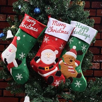Christmas Stocking Ki Store Christmas Decorations Large Christmas Stockings Vintage Set Of 3 Xmas Gift Candy Bags Socks Santa Snowman Reindeer 3d Embroidered Classic Characters 18 Inch By Kistore Amazon In Home