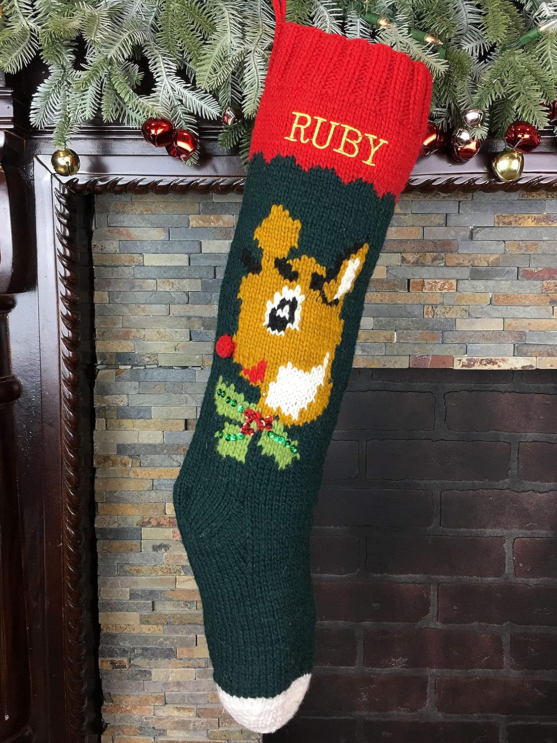 Amazon Com Christmas Stocking Personalized Hand Knit Rudolph Stocking Handmade