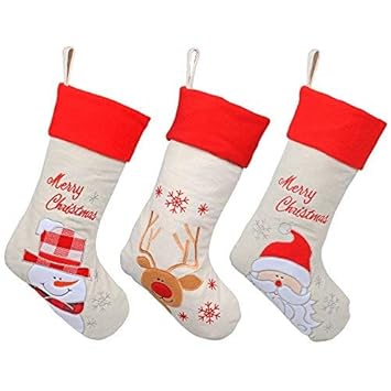 Christmas Stocking Ki Store Christmas Decorations Large Christmas Stockings Vintage Set Of 3 Xmas Gift Candy Bags Socks Santa Snowman Reindeer 3d Embroidered Classic Characters 18 Inch By Kistore Amazon In Home