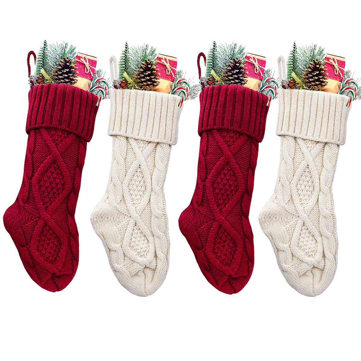 Buy Vusum Christmas Stockings 4 Pack 15 Knit Christmas Socks Burgundy And Ivory White For Family Holiday Xmas Party Decorations Online At Low Prices In India Amazon In
