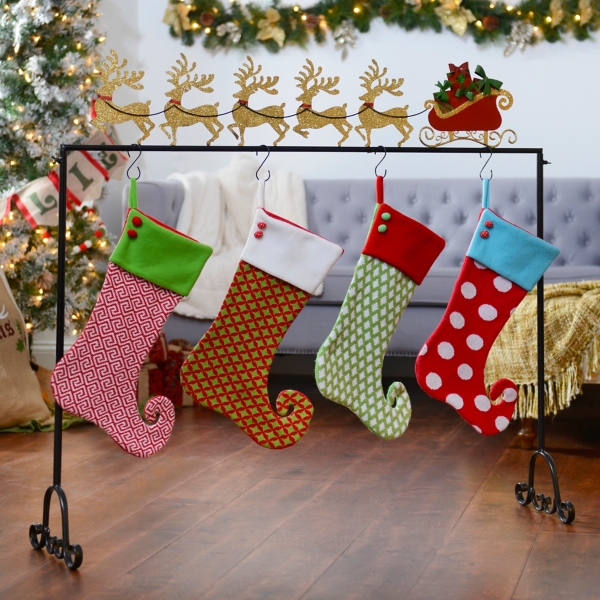 Consider this roundup of 32 christmas stocking holders available online right now. Dermapad tall metal christmas stocking holder stand gold. More buying choices 9 12 8 used new offers lulu decor cast iron christmas tree stocking holders sold in set of 3 trees in metallic red gold and silver finish beautiful heavy sturdy stocking hooks color trees 4 5 out of 5 stars 51.