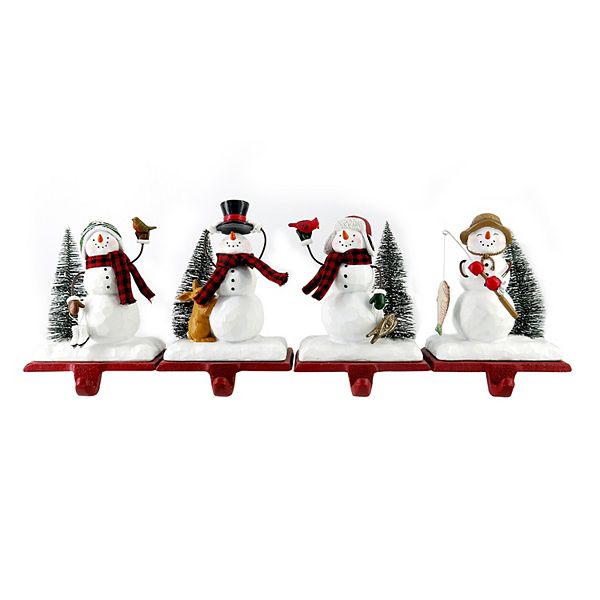 St Nicholas Square Snowman Christmas Stocking Holder 4 Piece Set
