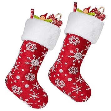Buy Townshine Red Christmas Stockings 18 Inches Faux Furry Fur Plush Cuff White Snowflake Large Xmas Stocking For Holiday Decoration 2 Online At Low Prices In India Amazon In