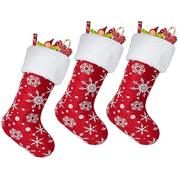 Buy Townshine Red Christmas Stockings 18 Inches Faux Furry Fur Plush Cuff White Snowflake Large Xmas Stocking For Holiday Decoration 3 Online At Low Prices In India Amazon In